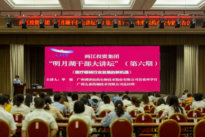 昨天(6月2日),两江投资集团第六期“明月湖干部大讲坛”在重庆举行。hth官方入口官方网站 董事长王廷春,hth官方入口官方网站 首席科学家(医疗器械方向)、子公司九泰药械总经理李强受邀出席此次会议并就生物医药产业相关话题作专题报告。