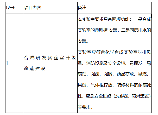 1.项目名称:合成研发实验室升级改造建设工程